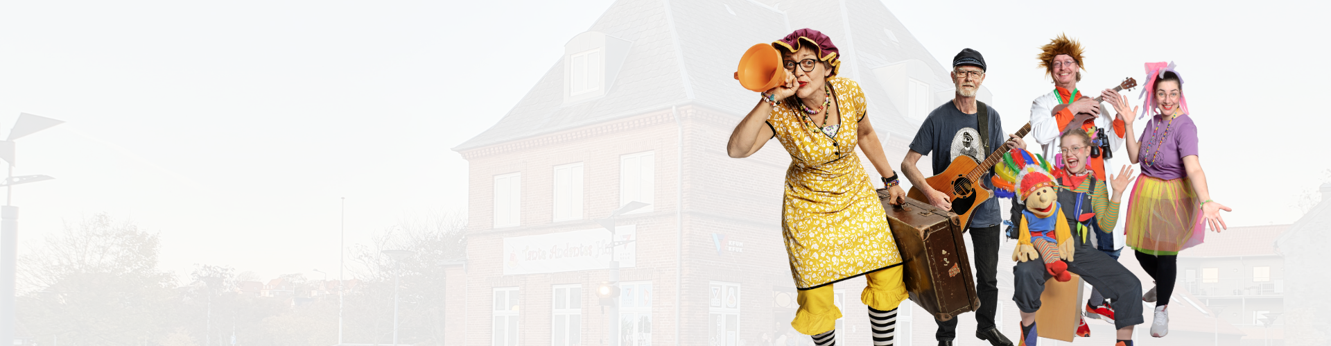 Tante Andante og hendes figurer og Tante Andante Band Lemvig tager ud af huset og på besøg hos Jer.