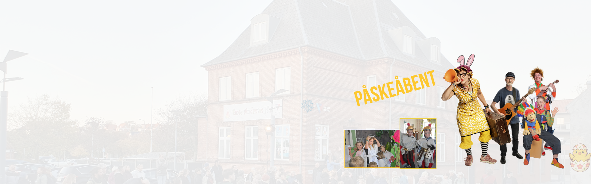 Kom og vær med til totalteater over påskens bibelfortælling med englesus, sværdslag og trompetfanfare! Alle kan deltage – både med kostume og sang, eller bare som publikum. Forestillingerne varer ca. 40 minutter og foregår kl. 10.30 og 14.00. 🐣