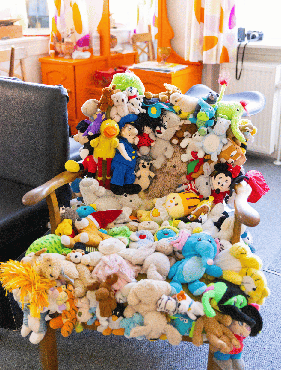 Bamsestolen er et hit blandt både små og store – kom forbi og smid dig i den bløde stol fyldt med alle dine yndlings bamser og figurer